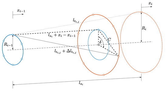 Diagram showing the change in tether length, , of the j-th tether within the i-th TRPT section.
