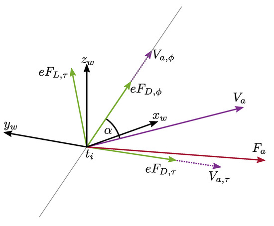 - Wind reference frame. It is defined as (), in which is parallel to the wind velocity vector, , which is parallel to the ground; is perpendicular to the wind vector and also parallel to the ground; and is perpendicular to the plane.