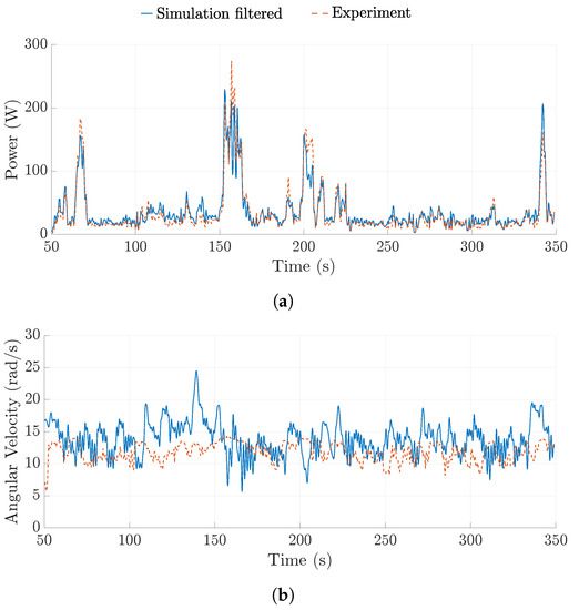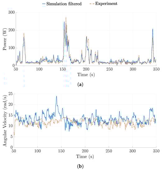 Comparison of the ground station angular velocity between the multi-spring model and experimental data. (a) 20 September 2018: rigid wing, TRPT−3; (b) 27 August 2018: rigid wing, TRPT−3; (c) 5 June 2018: soft wing, TRPT−2; (d) 18 June 2017: soft wing, TRPT−1.