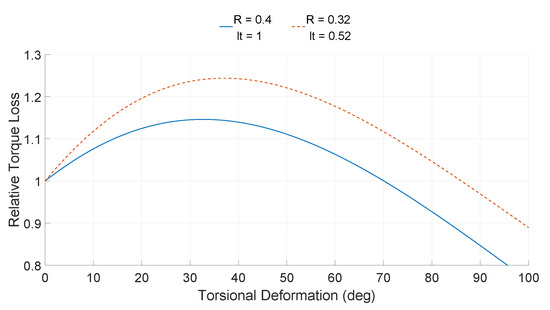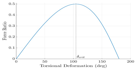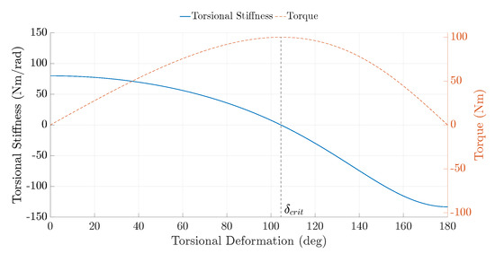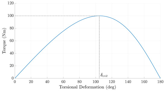 By setting the torsional stiffness to zero, the critical torsional deformation, , at which the maximum torque can be transmitted is derived to be
