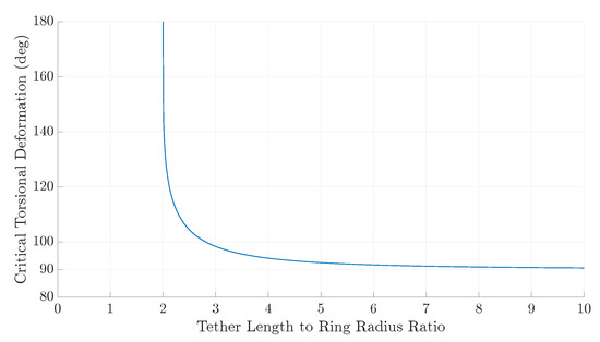The torsional deformation can be calculated for any steady-state operating conditions. The deformation of a single TRPT section can vary from 0° to 180°, beyond which the tethers will cross with each other, and the system is said to have failed. The torsional stiffness of a TRPT section, k, is calculated by