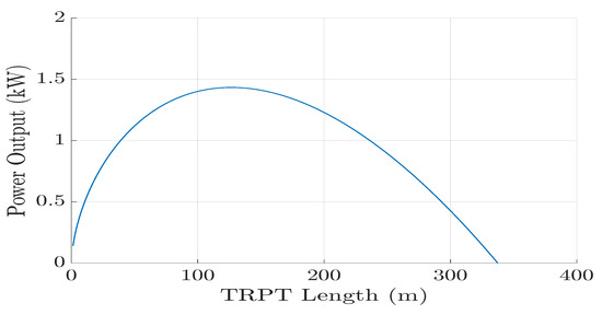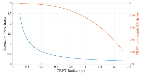 The steady-state analysis in Section 5 provides insights into system design and operation, and leads to optimised design. The simple tether-drag model was used to identify the key factors affecting the torque loss due to tether drag. It is shown that the most important factor is the TRPT radius, R, as the torque loss increases with . It is, therefore, advantageous to keep the TRPT radius small. Using the improved tether-drag model, the efficiency of the TRPT–4, operating under steady-state conditions at a tip speed ratio of 4.0, is shown to be 89%. A new TRPT design is proposed which has a constant radius of 0.5 m along its length, and a section length of 1.25 m.