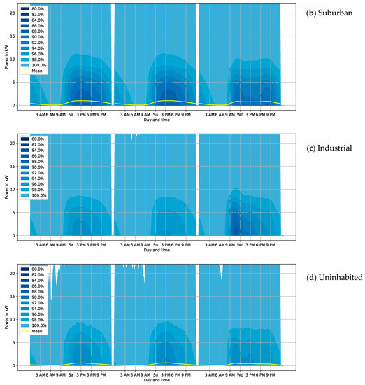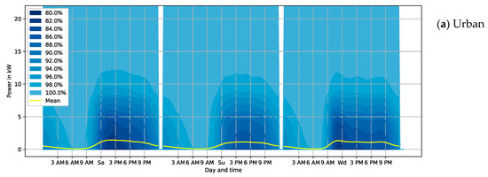Figure 6 shows the results of this analysis by displaying the profiles over the course of the week that could be generated using the methodology introduced in Section 2.2.4.