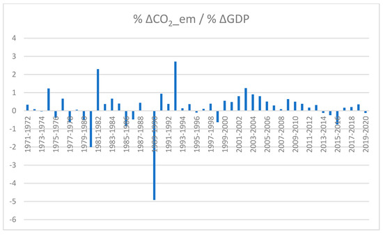 GDP_g elasticity of (EL_c) of CO2_em = %Δ CO2_em/%ΔGDP_g