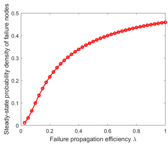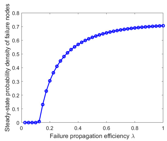 Figure 11 shows the change of steady-state probability density of failure nodes with λ. As power systems have certain small-world characteristics, failures do not last long without long-range random propagation.
