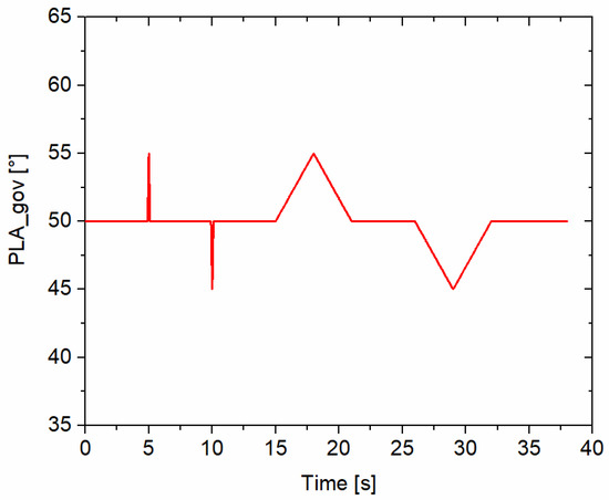 However, the purpose of the present study relied on the achievement of a linear model of the engine around a working point, which is representative of an equilibrium condition. In particular, the selected operating condition is indicated in Figure 2 as MAXDUR-A, and is characterized by a power lever angle (PLA) of about 50%, altitude h = 50 m and Mach = 0.09. In order to predict the dynamic behavior of the system, the engine equilibrium point must be altered by enforcing small changes to the PLA by applying step, ramp and pulse signals. In this case, variations of ±10% with respect to the steady state value were applied to the PLA according to the sequence displayed in Figure 3; transient simulations, which include dynamic phenomena such as spool inertia, heat transfer in turbomachinery and volumetric effects, were carried out by means of the GSP. The time series data sets obtained from simulations included compressor pressure ratio, compressor rotational speed, inlet and outlet turbine temperature, fuel flow rate, specific fuel consumption, engine torque and power.