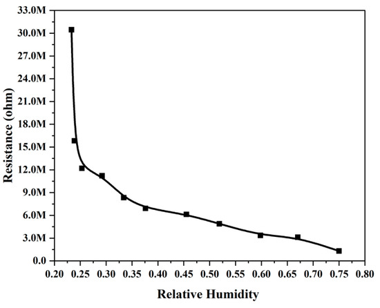 Environmental relative humidity vs. resistance of the FA–ZnO sensing material.