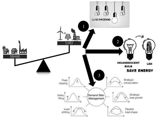 In the event of a grid failure, DGs can fulfill the distribution network’s energy needs. The deployed capacitors can aid DGs in fulfilling the reactive power demand of load. Since the installed power-generating capacity of the DGs and capacitors is typically less than the load demand, the electricity injected into the autonomous distribution network is less than the energy needs. In this instance, the electric utility can address the supply–demand disparity by lowering the electricity consumption, shedding the load, or executing a demand-side management (DSM) scheme.
