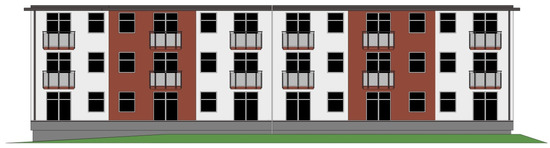 The comparative analyses of conventional heating systems, alternative heating systems based on renewable energy sources, as well as of hybrid heating systems, understood as a combination of conventional and alternative systems, were performed for the project of a multi-family residential building with an area of 1051 m2 located in Wrocław, Poland. It is a rectangular, 3-storey, two-staircase building with an unheated underground garage. It consists of 18 residential units and is intended for 50 residents (Figure 1 and Figure 2). Its external walls were designed of sand lime bricks thermally insulated with mineral wool slabs. The flat roof consists of the reinforced concrete ceiling thermally insulated with extruded polystyrene panels. Inter-floor ceilings are designed as reinforced concrete. The windows are made of aluminum profiles with double-chamber glazing units. There are aluminum exterior doors. The heating is by means of surface water heat pump with hot utility water prepared centrally.