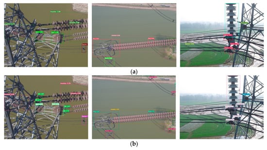 In order to verify the effectiveness of the optimization, we conducted a comparative experiment on the model before and after optimization. The results are shown in Figure 3. It can be seen that the original network misses the detection of some small objects, while the optimized network can accurately detect the adjusting plates and spacers, and can detect the occluded suspension clamp. It is verified that the above optimization methods can improve the extraction of detailed features of the network and can effectively improve the detection of small objects.