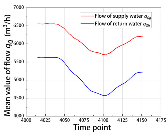 The time interval of the step data identified in this paper is consistent with the time point of the actual working condition change, which verifies that this method can be applied to the actual heat network model, and future research will be focused on verifying this with more data. As shown in Table 6, each long interval has two sets of different flow data, and the long interval types for the two sets of flow data are the same. To determine whether the reasons for the anomalies of the two sets of different flow data are the same, the variation patterns of the time-series fluctuation values of step data points in the long interval must be studied.