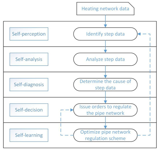 A regulation system is an important part of smart heating [10]. The regulation system senses abnormal pressure data and flow data and immediately takes appropriate adjustment measures, such as adjusting valves, to bring the flow and pressure back to normal. However, since each regulation takes a different time to restore the state of the network, and the system cannot distinguish whether the cause of abnormal data is normal operation or network failure, the system will frequently issue regulation commands that result in oscillations in the network. The main cause of this problem occurs during the analysis stage of a smart heating control system, which can sense abnormal data but cannot analyze the physical relationships of step data, so the system cannot diagnose the cause of the step data, and then issues wrong control orders.