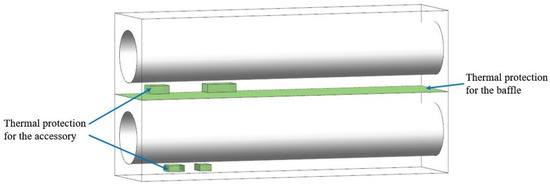 - For accessory 1 with an internal heat source of 1000 W and internal fuel access, the thermal protection effect of adding a heat insulation layer and ventilation was the best, which caused the temperature of accessory 1 to decrease by 43 K.