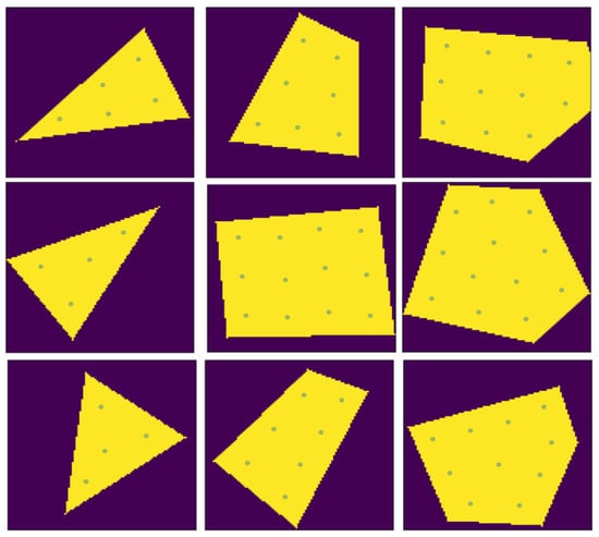 We construct permeability fields by sampling from 200 permeability fields generated by the open-source package SGeMS. We assume that the discretized permeability field in a heterogeneous reservoir follows a log-normal distribution. The mean value of log-permeability is 7, and the variance is 0.5. Detailed parameters of the geological model are shown in Table 1. Then, we take a random one of a triangle, square and pentagon as the boundary shape for each reservoir, as shown in Figure 7. We found that most of the boundary shapes of unconventional reservoirs can be regarded as one of these three shapes. Vertically, we use boundary shape and property distribution as the same as each layer.