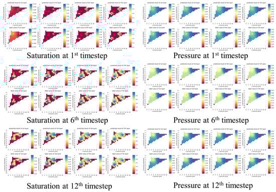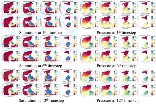 Since we need to obtain the pressure field and saturation field at the same time, they are coupled in the calculation process. The concept of multi-task learning also needs to be employed for reference []. There are many branches of multi-task learning used in different domains, such as computer vision [], natural language processing [] and reinforcement learning []. Generally, tasks tend to accomplish prediction with the assistance of their own specific task indicators, which commonly are their instinct styles or arranged numbers. Unfortunately, our data do not have such clearly pre-defined indicators for the two fields.