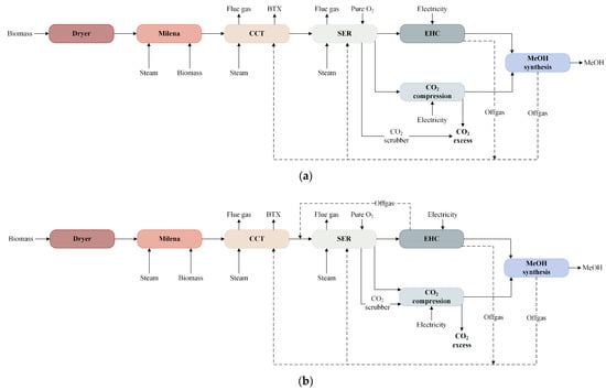 - Sun, Z.; Aziz, M. Comparative Thermodynamic and Techno-Economic Assessment of Green Methanol Production from Biomass through Direct Chemical Looping Processes. J. Clean. Prod. 2021, 321, 129023. [Google Scholar] [CrossRef]