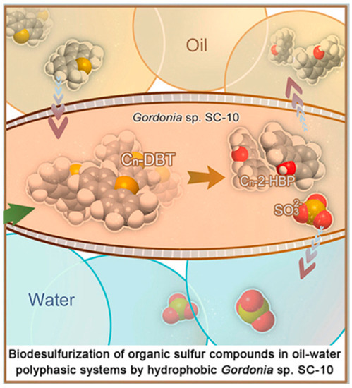- Chen, S.; Zang, M.; Li, L.; Chen, J.; Liu, Q.; Feng, X.; Sun, S.; Zang, C.; Zhao, C. Efficient Biodesulfurization of Diesel Oil by Gordonia Sp. SC-10 with Highly Hydrophobic Cell Surfaces. Biochem. Eng. J. 2021, 174, 108094. [Google Scholar] [CrossRef]