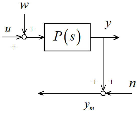 Now we introduce continuous-time FOLADRC. Suppose we have a single-input–single-output (SISO) plant, shown in Figure 1. The plant has a transfer function . Its input is a control signal added by a disturbance , while the output is measured and measurement noise is added to the measurement output . That is, we have: