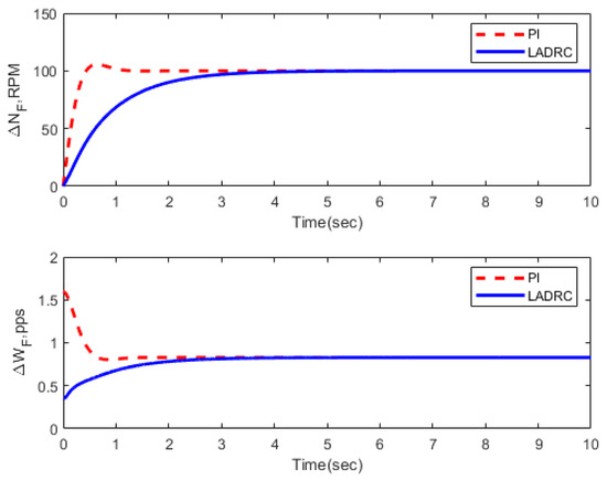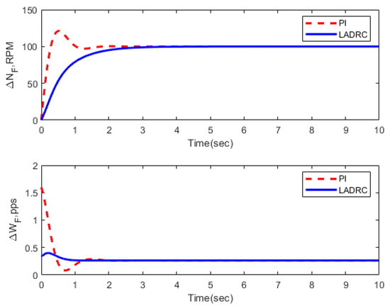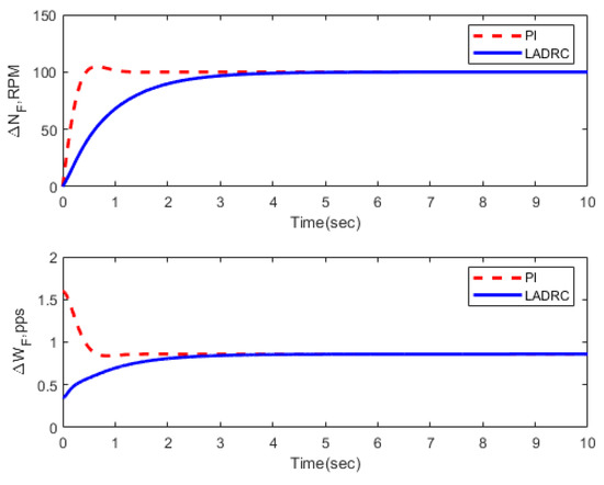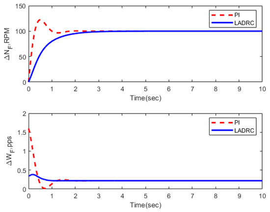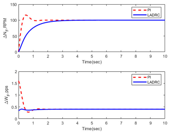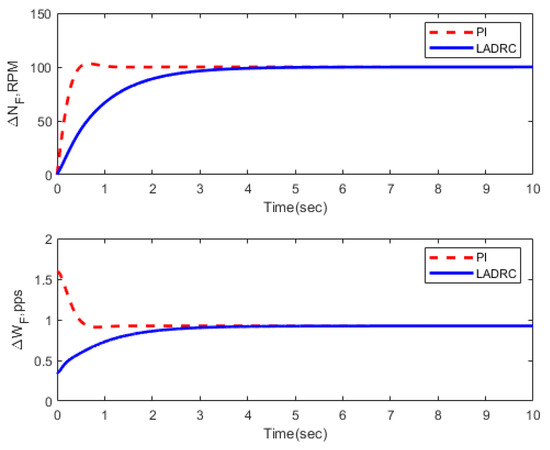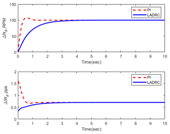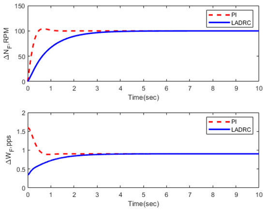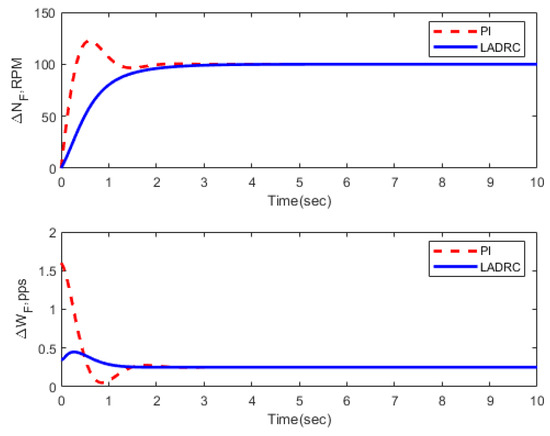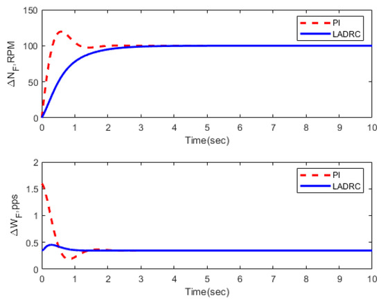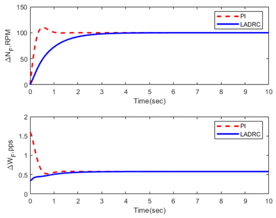 All 14 linearized models are simulated with Matlab 2016. The results are drawn in Figure 10, Figure 11, Figure 12, Figure 13, Figure 14, Figure 15, Figure 16, Figure 17, Figure 18, Figure 19, Figure 20, Figure 21, Figure 22 and Figure 23. In all simulations, FOLADRC performs better than PI control. In particular, FOLADRC for FC07–FC09 and FC12–FC14 has PMs less than 69.8°, which is the PM PI control for FC10. But the former six have no overshoot, while the latter one has. The reason is the pre-filter in Figure 2b.