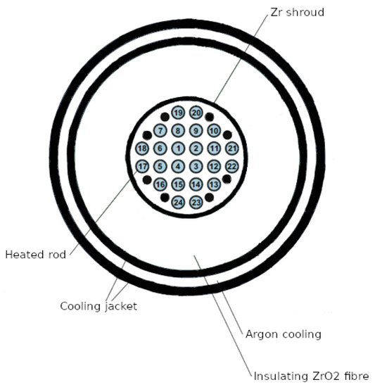 Figure 1). Rods 1–24 are heated, black rods are unheated. The main features of the QUENCH-19 test bundle are presented in