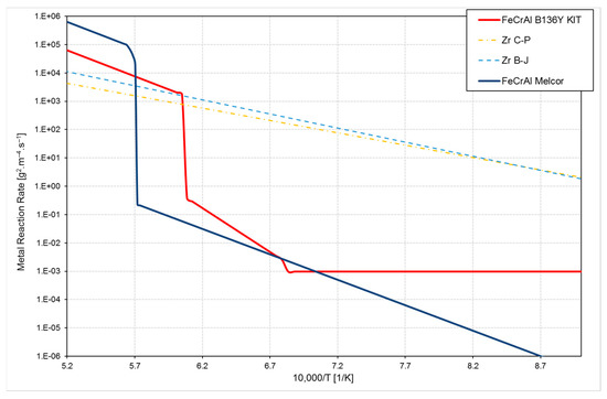 Table 3. Breakaway oxidation for FeCrAl above 1748 K is modeled using the stainless-steel reaction rates given by C1002 (steel oxidation rate constant coefficients) for H