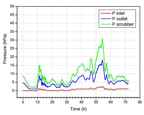 Pressures at reactor inlet, outlet, and inside scrubber [48].