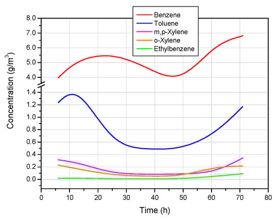 The concentration of BTEX components.