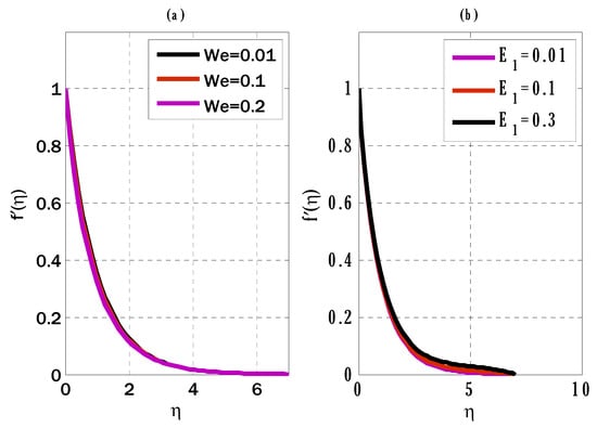 where is the Wiesenberg number, is the magnetic parameter, denotes local electric parameter, is the Prandtl number, is the Schmidt number, is the Eckert number, represents thermophoresis parameter, denotes the Brownian motion parameter, and shows the dimensionless reaction rate parameter and these are defined as