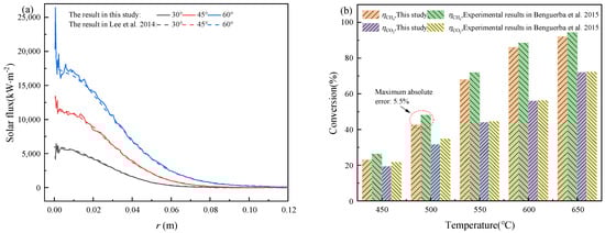 - Shi, X.; Zhang, X.; Wang, F.; Yang, L.; Dong, Y.; Shuai, Y. Thermochemical analysis of dry methane reforming hydrogen production in biomimetic venous hierarchical porous structure solar reactor for improving energy storage. Int. J. Hydrogen Energy 2021, 46, 7733–7744. [Google Scholar] [CrossRef]