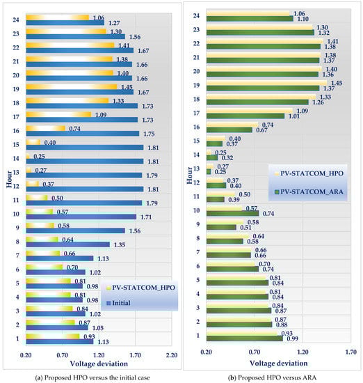 - The suggested HPO is more effective than the differential evolution (DE) algorithm, PSO, ARA, and golden search optimizer (GSO) [11] in minimizing energy losses and voltage profile variances while maintaining all operational requirements.