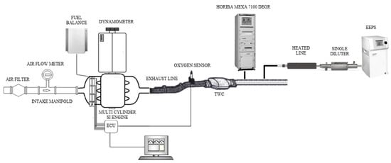 Sampling probes were installed in the exhaust pipe downstream of the TWC and connected to the emission measurement instruments, as shown in Figure 1.