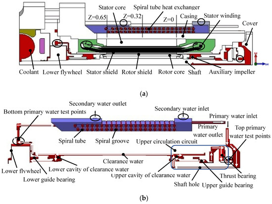 As one type of green and low-carbon energy, small-capacity nuclear power has a broad space for development in the current global world. The shielding induction motor of the nuclear main pump is used to drive the reactor cooling pump, and its thermal behavior, which is closely related to its lifespan and efficiency, and is crucial for the primary circuit loop system of a nuclear reactor in the nuclear power plant [1,2,3,4]. Thermal investigation of the shielding induction motor of the nuclear main pump is in the ascendant.