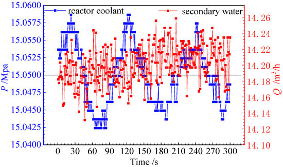 The motor prototypical experiment has been conducted for 48 h continuously in the steady thermal rated operating condition. Fragments extracted from the test data of some parameters recorded by the instrument in the 300 s interval of the steady state are shown in Figure 5.