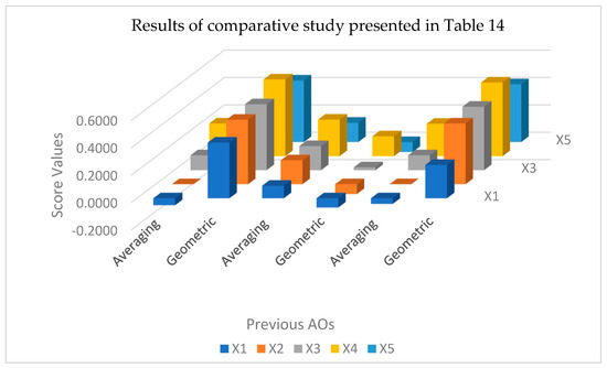 The analysis of Table 14 shows the result of the MCGDM problems considered in Example 1 and using some previous approaches. From the study, we conclude that the results were obtained using previous AOs. However, they solved the current example, but did not utilize prioritization, proving the proposed approach’s worth. Further, some AOs established in the framework of PyFSs and IFSs cannot solve the given problem showing the diverse nature of q-ROFSs and the proposed q-ROFPAAA and q-ROFPAAG operators.