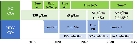 - AECC. Euro 7 Emission Standards for Cars, Vans, Buses and Trucks; Position Paper; European Comission: Brussels, Belgium, 2023. [Google Scholar]