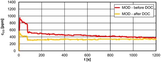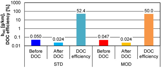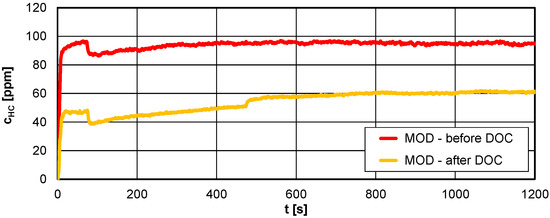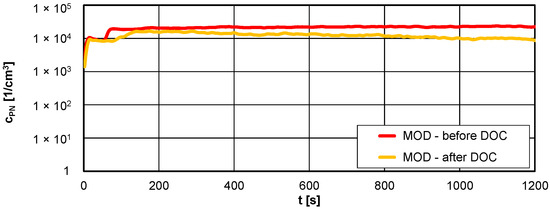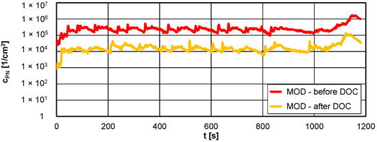 4.1. The Exhaust Concentration before and after DOC for Hot Engine Idling