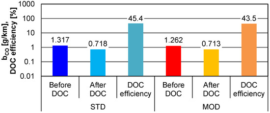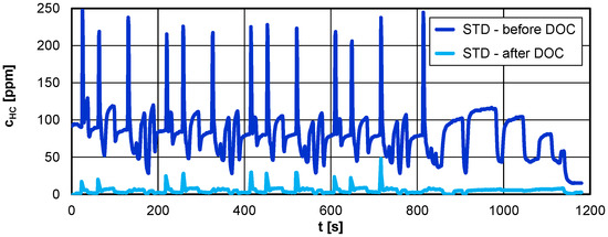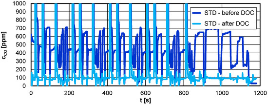 4.2. Exhaust Emissions Measurements Upstream and Downstream of the DOC in the NEDC Test