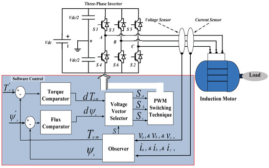 - Yen-Shin, L.; Jian-Ho, C. A new approach to direct torque control of induction motor drives for constant inverter switching frequency and torque ripple reduction. IEEE Trans. Energy Convers. 2001, 16, 220–227. [Google Scholar] [CrossRef]