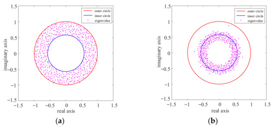 Let the radius of the eigenvalues of the standard matrix product be λi (i = 1, 2, 3, …, M) and the radius of the inner loop of the ring law be Rinner. The mean spectral radius Rmsr is a linear eigenvalue statistic that can be used to describe the overall distribution of eigenvalues. Rmsr is given by: