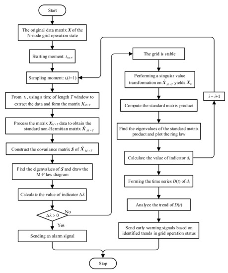 Random matrix theory (RMT) is a data analysis method specifically designed to work with high-dimensional data [16,17]. Like deep learning, RMT is also a very effective data analysis tool at present. Both of them have unique advantages in high-dimensional space: the RMT has flexible and rigorous mathematical analysis capabilities, and the deep learning has superior data modeling capabilities. Deep learning technology in engineering applications usually requires labels and has specific requirements on the categories and quantity of labels. But the data sets in the actual power grid often find it difficult to meet the above conditions. RMT does not need to define labels, and there is no model training as complex as deep learning; so it is more efficient and suitable for dealing with complex power grids with complex models, strong uncertainty, unclear causality and high data dimension. In [18], random matrix theory was first introduced into the field of power systems. Subsequently, in [19], a correlation analysis method based on random matrix theory was proposed, which can analyze the connection between various factors and grid operation state in real-time and quantitatively. In [20], a method for analyzing and locating system anomalies and disturbances based on random matrix theory was proposed. In [21], for the distribution grid with high penetration of renewable energy with a high uncertainty problem, the authors proposed a topology identification method using random matrix theory to improve the effectiveness of topology identification. In [22], a method which can effectively identify the abnormal state of power consumption by random matrix theory was proposed. In [23], based on random matrix theory, a data-driven approach for fault time determination and fault area location to avoid the influence of bad data was proposed. In [24,25], the authors used the big data fusion technology of random matrix theory to evaluate the static stability and transient stability of the power grid, ignoring the complex physical model and making full use of the high-dimensional and massive data generated during operation. These above studies show the excellent applicability of random matrix theory for analyzing the operation state of the power grid.