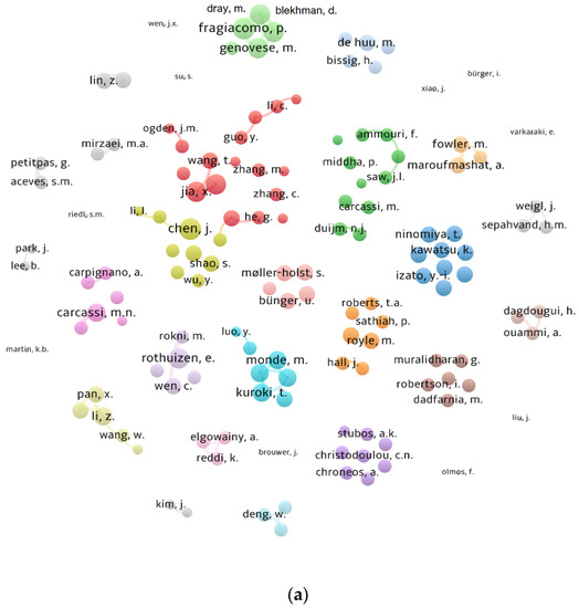 Clusters of authors according to VOSviewer (a) and Organizations’ collaborations (b), by processing Scopus database.