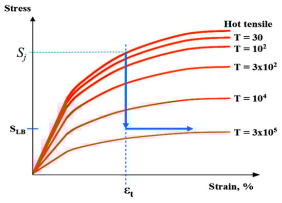 (Step-4): Determine the initial stress level (Sj) corresponding to the total strain range (ϵt) of j-th SCT from the isochronous stress–strain curve at time zero and hold temperature (THT) as shown in the concept of Figure 2.
