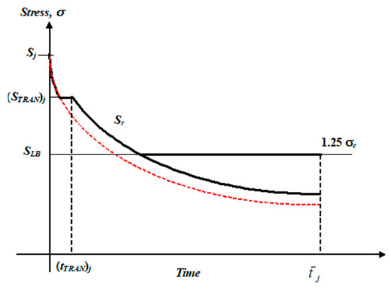(Step-6): Modify the j-th stress relaxation time history by reflecting the following transient conditions, as shown in Figure 3 (red line is original), and repeat Step-3 to Step-6 for all SCT: