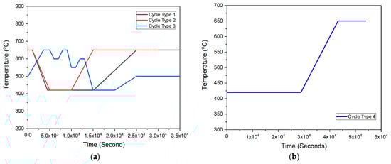 Used operation cycle types for temperature: (a) OCT-1~OCT-3; (b) OCT-4.