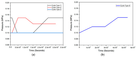 Used operation cycle types for pressure: (a) OCT-1~OCT-3; (b) OCT-4.