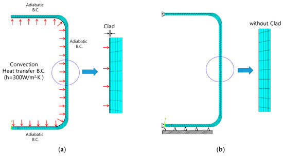 According to Step-2 procedure of fatigue evaluation, finite element thermal and stress analyses are performed for each OCT. For the analyses, the commercial ANSYS [27] finite element analysis program is used in this study. Figure 9 shows the axisymmetric finite element model, including the cladding and the thermal and mechanical boundary conditions. For the finite element analysis, the axisymmetric element of PLANE55 (2-D thermal Solid) is used for thermal analysis, and the axisymmetric PLANE182 (2-D 4 node structural solid) element is used for stress analysis.
