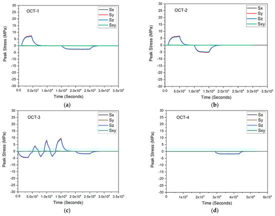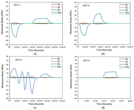 - Directional stress components of membrane, bending, and peak stress at stress extremes for each OCT;