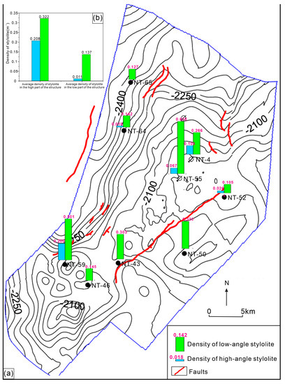 | Low-angle stylolite (cm) | 1.768 | Figure 4a | 0.852 | Figure 4c | 1.054 | Figure 4e |
