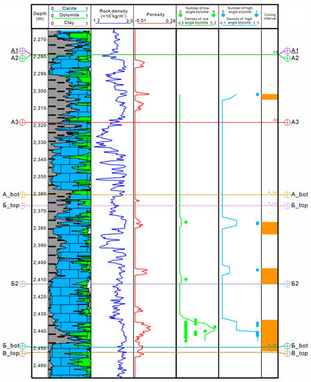 | Well | Curvature | Depth | Calcite Content | Dolomite Content | Clay Content | Rock Density | Porosity | r5 | Density of Low-Angle Stylolites | Density of High-Angle Stylolites |