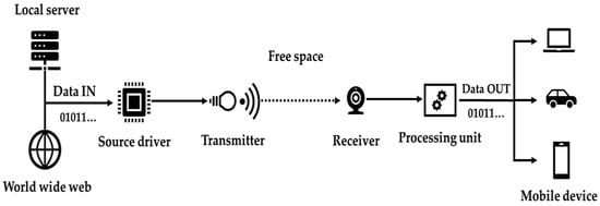 Figure 12 shows the technical implementation of Li-Fi. By turning the current on and off, an electrical driver controls the brightness of the light generated by the transmitter of solid-state light sources such as an LED or a laser diode. Implementing Li-Fi is rather simple because solid-state lighting is becoming more and more common in infrastructure (road lighting, traffic signals, and vehicle head- and taillights). A completely new infrastructure must be constructed in comparison to similar systems employing traditional RF-based communication (such as dedicated short-range communications, or DSRC). Since a Li-Fi transmitter can be as basic as an LED light, current lighting systems could be converted to Li-Fi transmitters. Following that, it can serve as a hub for accessing information for both automobiles and other road users (pedestrians, bikes, etc.). This results in a low implementation cost and a large number of accessible access points. With minimal effort, the current “dumb” lighting infrastructure for roads may transform into a “smart” lighting infrastructure. However, as was previously mentioned, its implementation is still difficult. However, compared to alternatives, the expenses of implementation are cheaper.